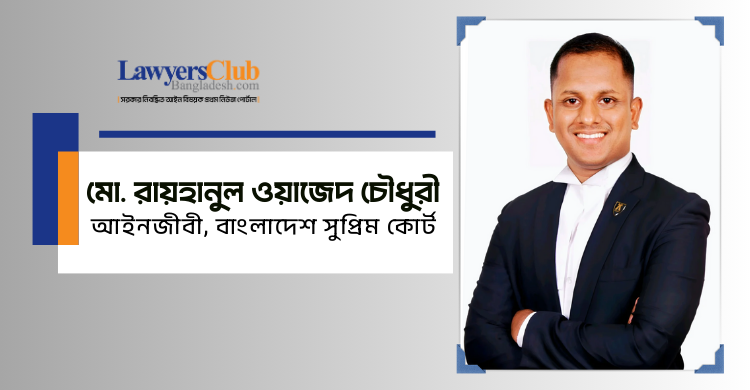 লেখক : মোঃ রায়হানুল ওয়াজেদ চৌধুরী; অ্যাডভোকেট, বাংলাদেশ সুপ্রীম কোর্ট ও সহকারী পাবলিক প্রসিকিউটর, চট্টগ্রাম মেট্রোপলিটন আদালত।